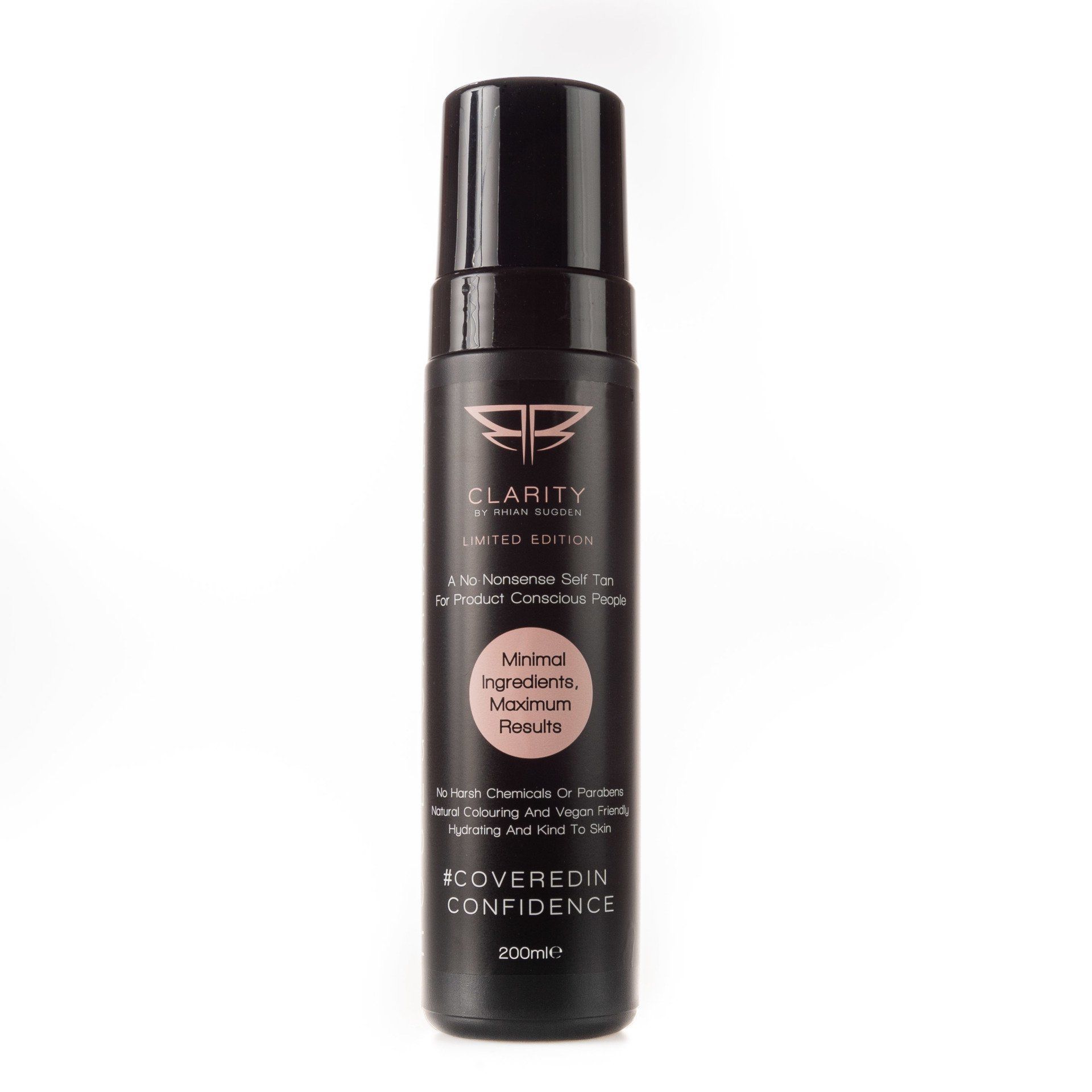 Teaming up with award-winning tanning brand Rose & Caramel, Rhian has launched her brand new, all-natural self tan Clarity. Stemming from her own fertility and IVF struggles, Clarity is a vegan-friendly tan made using just 9, natural ingredients. Made using the kindest formulation possible, the self tanning mousse uses minimal ingredients while still achieving maximum colour.